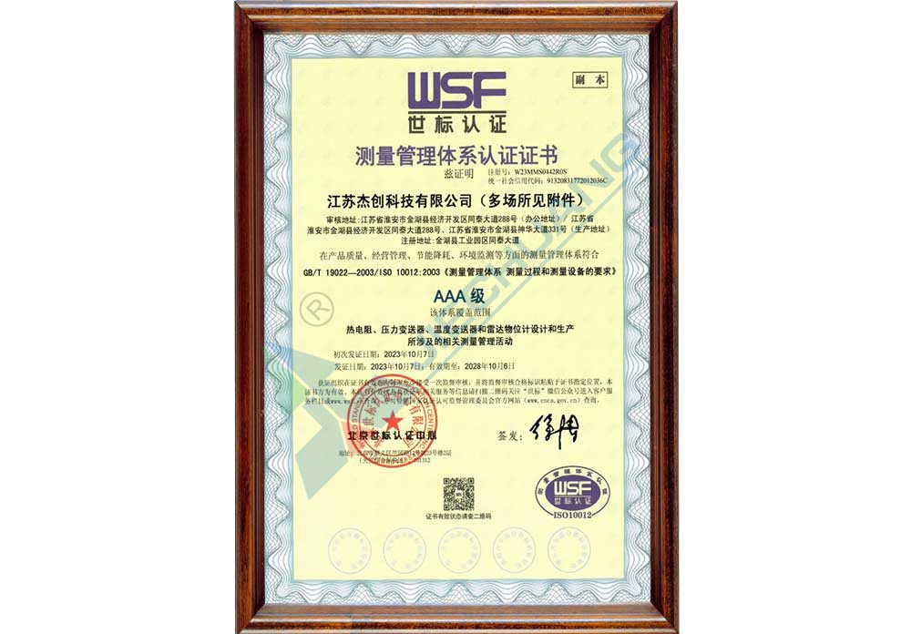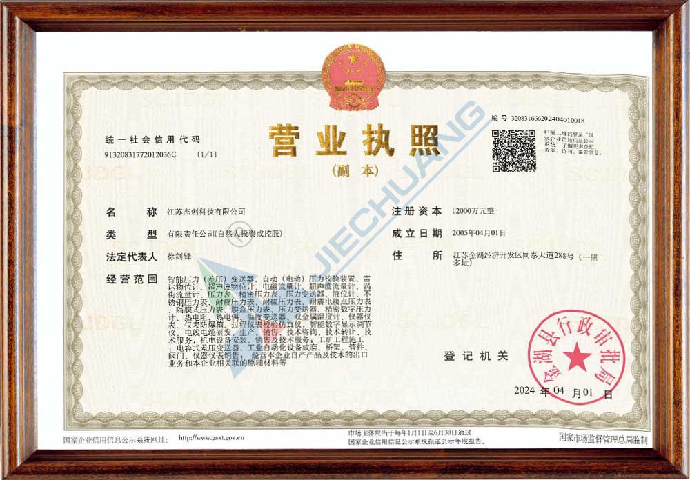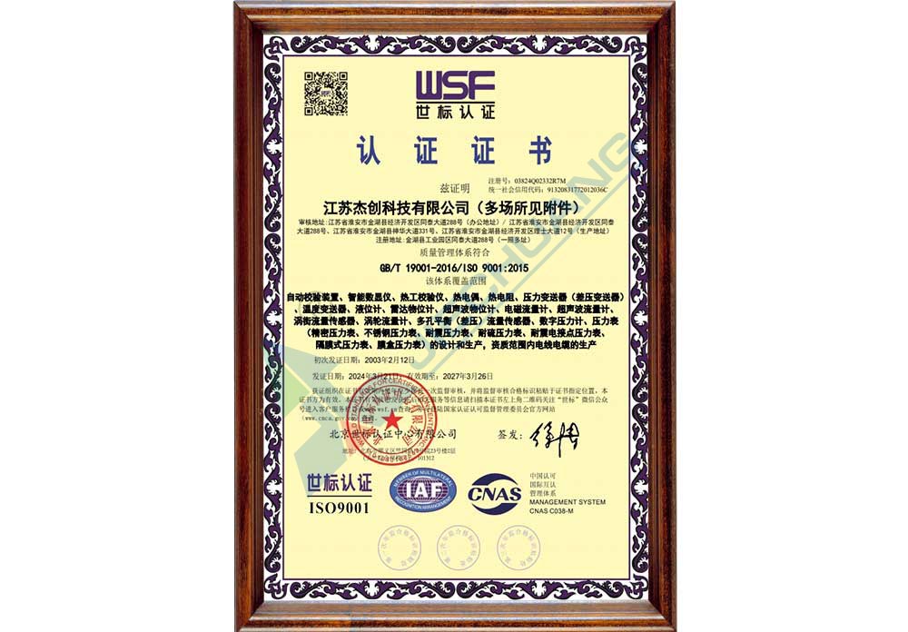 ·杰創(chuàng)牌整體結構式壓力(差壓)變送器獲得江蘇省名牌產品