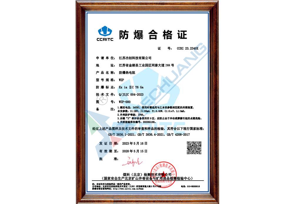 ·取得熱電阻、熱電偶防爆證